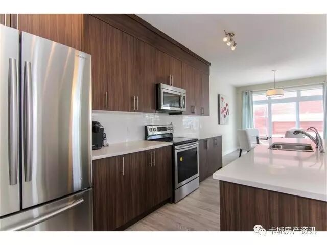 厨房设施齐全,全新双门大冰箱,石英石操作台面