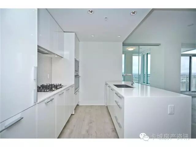 再来看这次推出的大户型2居室:2卧室2卫生间,建筑面积861平尺,朝向面西北,白色经典欧式厨房带中心岛,自带地下车库车位和储藏间,有绝佳的Downtown天际线和落基山景视野。