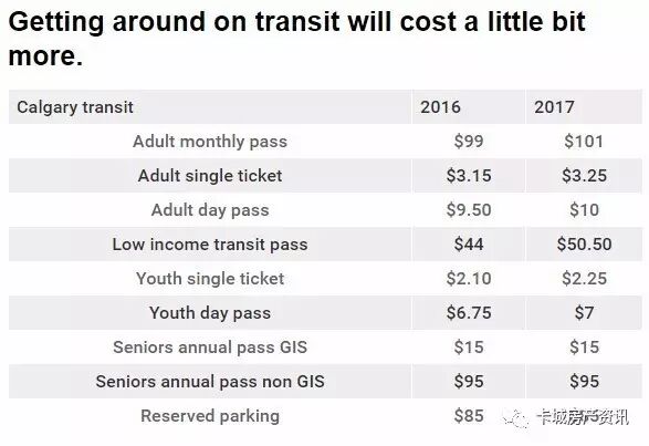 首先,乘坐公共交通费要上涨了,涨价幅度不大,单票由3.15涨到3.25加币,月票从99涨到101加币,车位保留月费不变。具体如下: