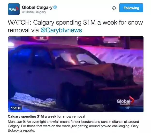 每周,卡尔加里市政就有耗费100万加币来扫雪~(下图)