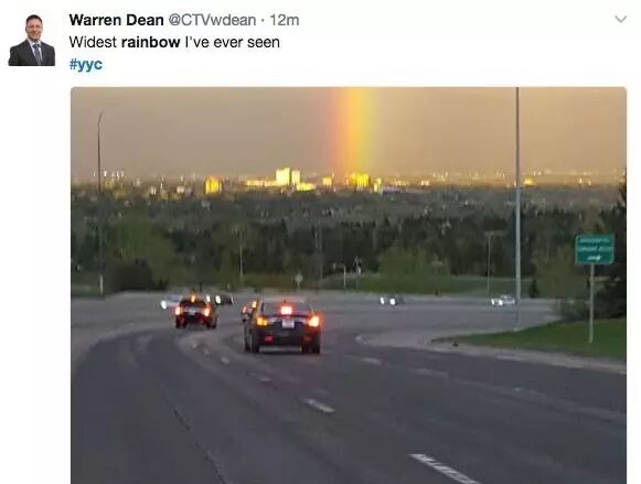 但是一道硕大的彩虹竟然随后出现在卡尔加里升空,